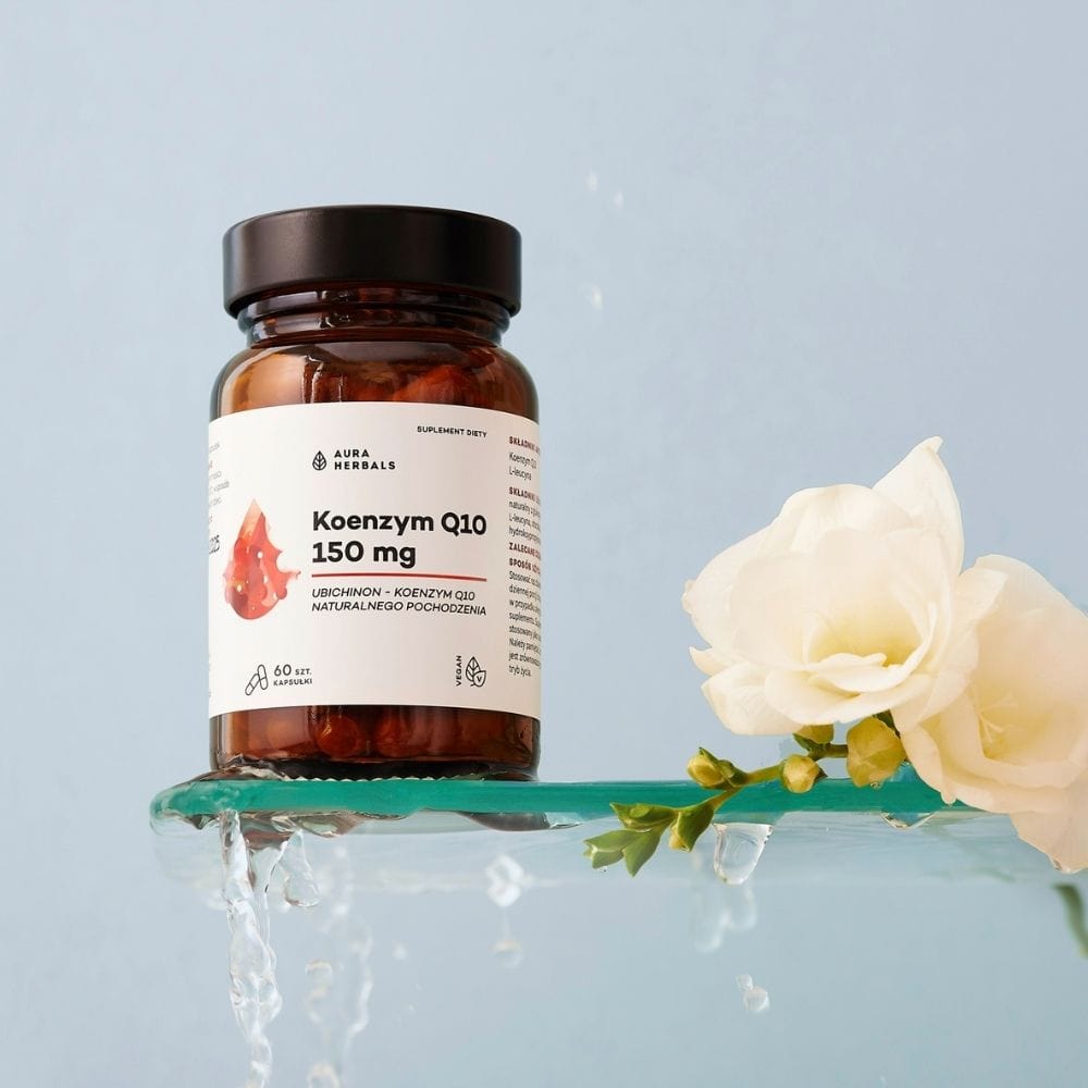 Aura Herbals Koenzym Q10 je doplněk stravy ve formě rostlinných tobolek. Obsahuje přírodní koenzym Q10 (ubichinon) z kukuřičné glukózy. Každá kapsle obsahuje 150 mg koenzymu Q10.