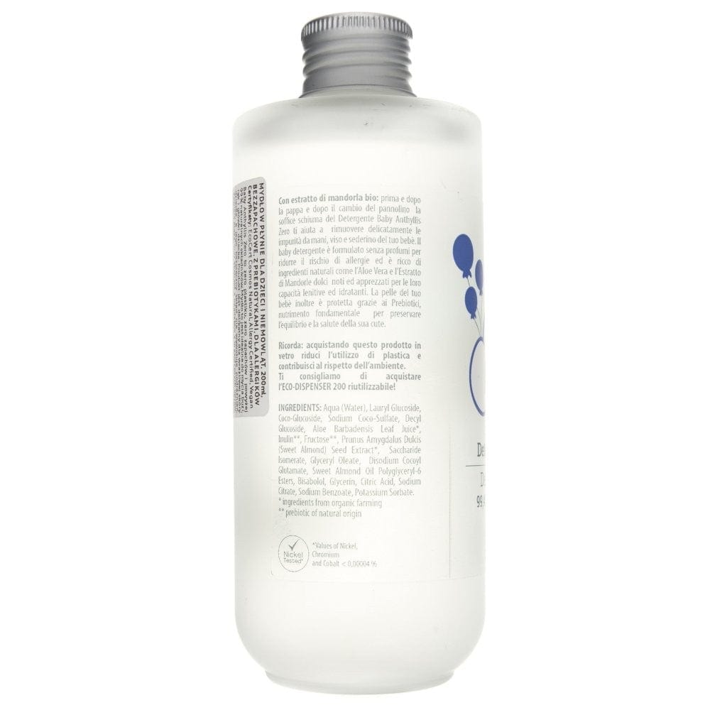 Baby Anthyllis ZERO tekuté mýdlo ve skleněném obalu je dětský výrobekpro každodenní hygienu. Používá se k mytí obličeje, a hlavy dítěte po jídle a po každé výměně plenky. Bezpečně odstraňuje nečistoty na pokožce obličeje, rukou a hlavy pomocí jemné pěny.