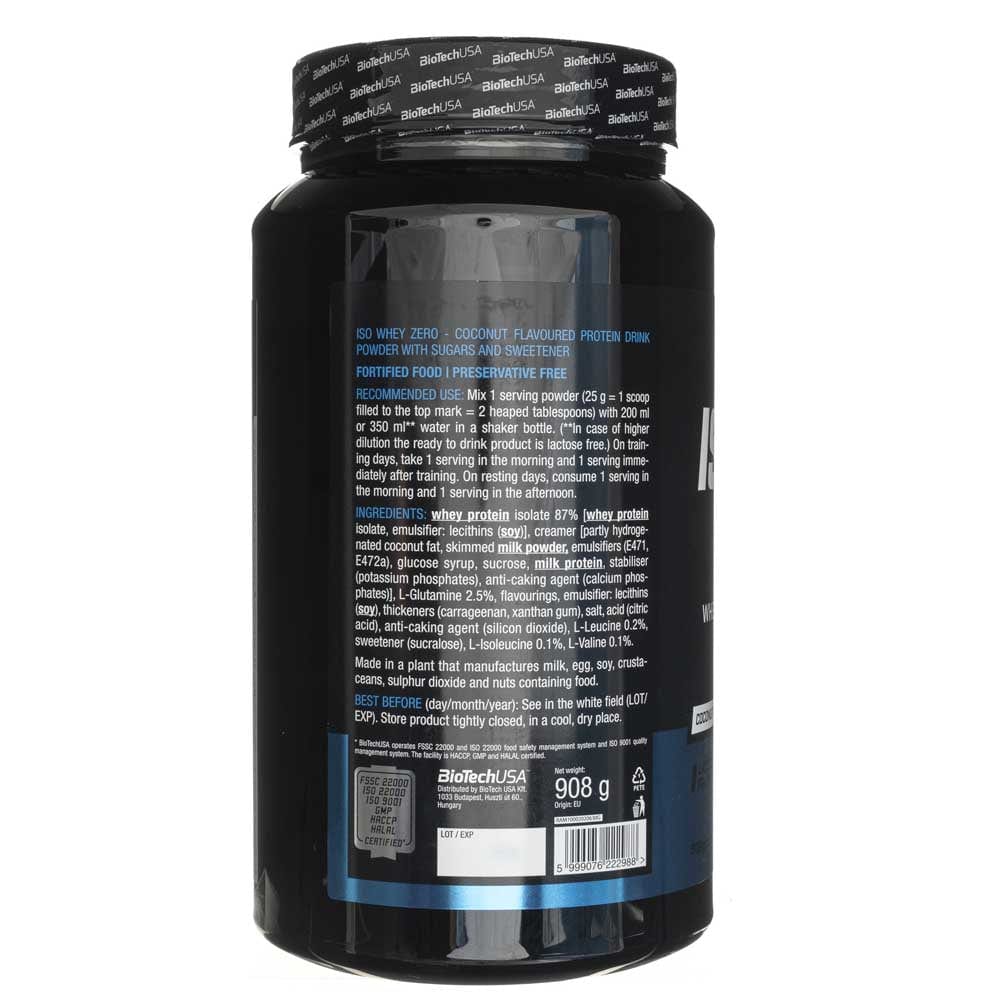 BioTech USA Iso Whey Zero , s kokosovou příchutí - 908 g