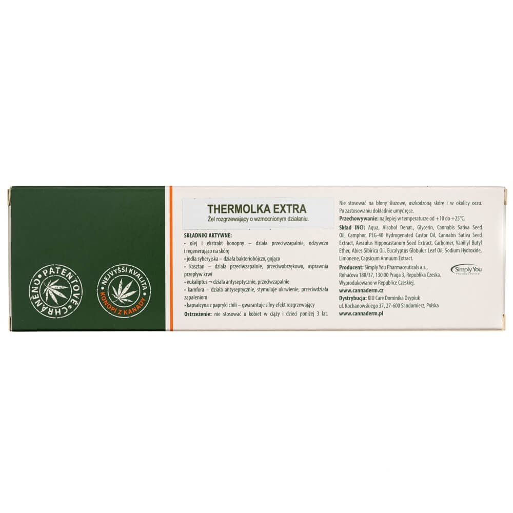 Hřejivý gel na bolesti svalů a kloubů se zvýšeným účinkem. Obsah konopí zvýšen na 16 % (Thermolka v základní verzi obsahuje 6 % konopného oleje). Zmírňuje chronické bolesti zad a kloubů, snižuje ztuhlost kloubů a svalů.