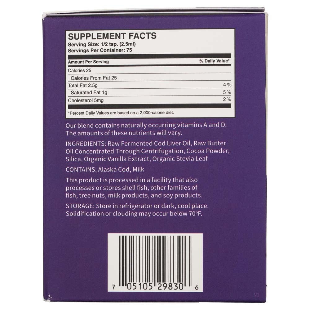 Dr. Weston A. Price D.D.S. zjistil, že olej z tresčích jater v kombinaci s máslovým olejem je prospěšnější než každý z nich samostatně. Na základě toho jsme vytvořili tento jím inspirovaný směsný produkt. Jedná se o kombinaci našeho fermentovaného oleje z tresčích jater a našeho koncentrovaného máslového oleje. Tento směsný výrobek je bohatý na živiny a plný zdravých tuků, které posilují zdraví vaší ústní dutiny a celkové zdraví.