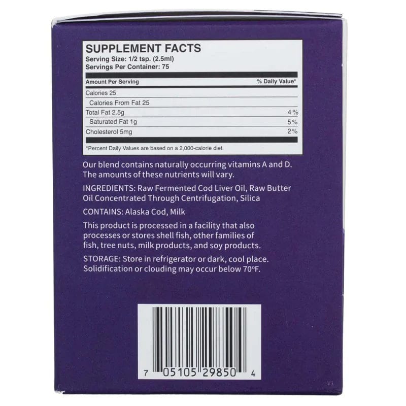 Dr. Weston A. Price D.D.S. zjistil, že olej z tresčích jater v kombinaci s máslovým olejem je prospěšnější než každý z nich samostatně. Na základě toho jsme vytvořili tento jím inspirovaný směsný produkt. Jedná se o kombinaci našeho fermentovaného oleje z tresčích jater a našeho koncentrovaného máslového oleje. Tento směsný výrobek je bohatý na živiny a plný zdravých tuků, které posilují zdraví vaší ústní dutiny a celkové zdraví.