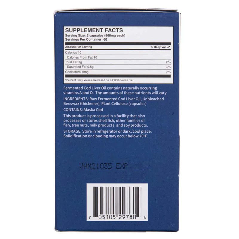 Fermentovaný olej z tresčích jater kapsle obsahují náš na živiny bohatý fermentovaný olej z tresčích jater. Jsou pohodlnější na cesty a některým lidem se lépe polykají. Tyto kapsle obsahují přirozeně se vyskytující živiny rozpustné v tucích, včetně vitaminů A & D a omega 3, 6, 7, & 9 mastných kyselin. Protože jsou všechny tyto živiny přírodní, naše tělo je snáze vstřebává a využívá.