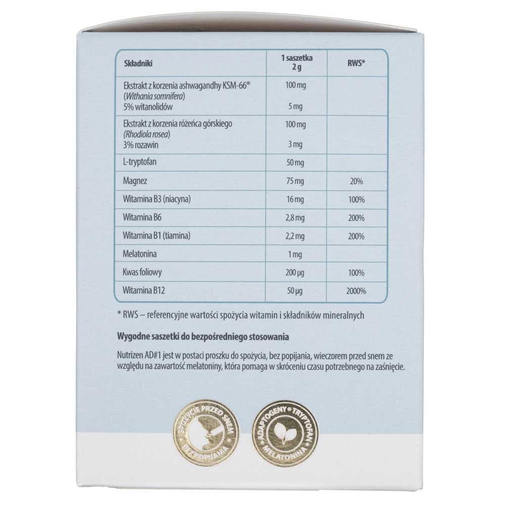 Nutrizen AD 1 je doplněk stravy obsahující pečlivě vybraný komplex adaptogenů, tryptofanu a melatoninu obohacený o vitaminy skupiny B a hořčík, který pomáhá udržovat normální psychické funkce, rychleji usínat a snižovat pocity únavy.