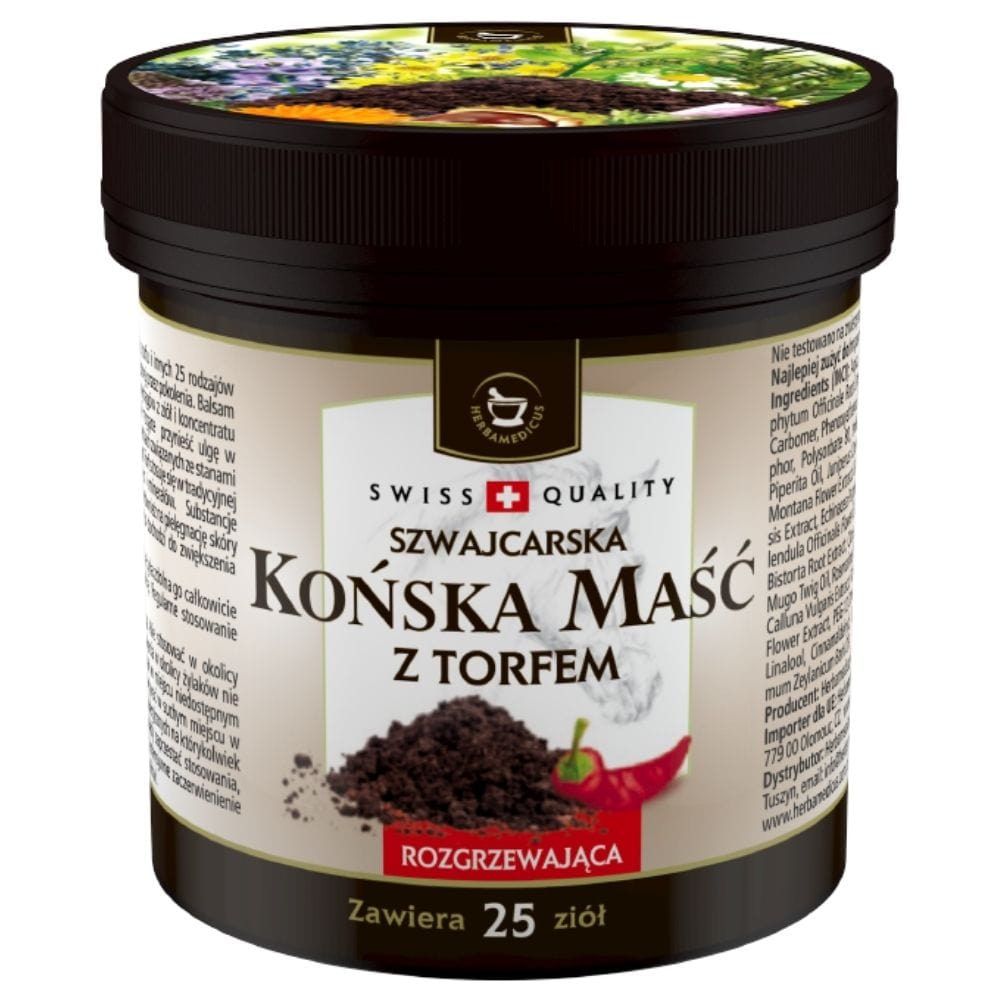 Herbamedicus Koňská mast s rašelinou hřejivá je unikátní bylinný balzám vytvořený z vysoce kvalitní rašeliny a 25 bylinných extraktů . Receptura založená na tradiční receptuře poskytuje intenzivní hřejivý účinek a účinně podporuje regeneraci.