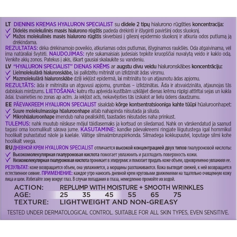 Hydratační denní krém Hyaluron Specialist je inovativní přípravek vyvinutý laboratořemi L'Oréal Paris jako součást regenerační hydratační péče. Reaguje na potřeby žen, které chtějí udržet svou pleť mladou a svěží, účinně bojuje proti prvním známkám stárnutí a poskytuje ochranu před škodlivým slunečním zářením.
