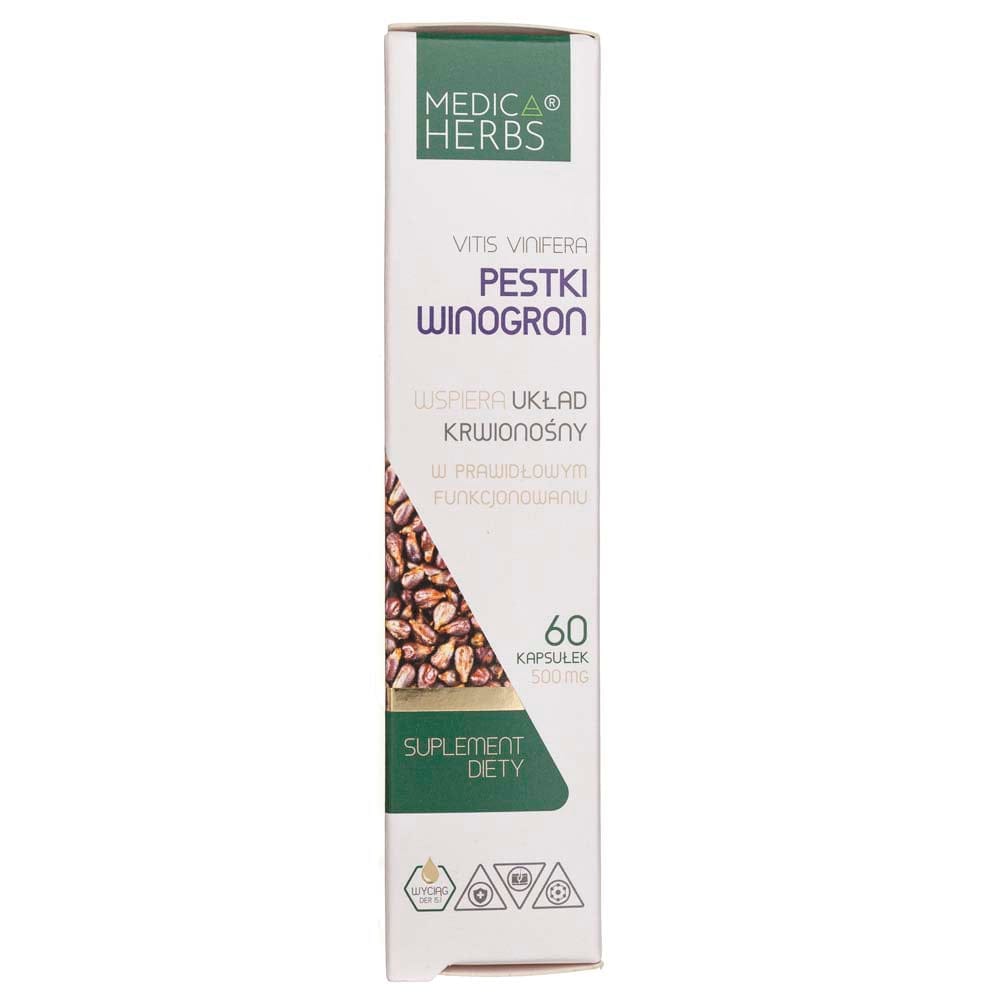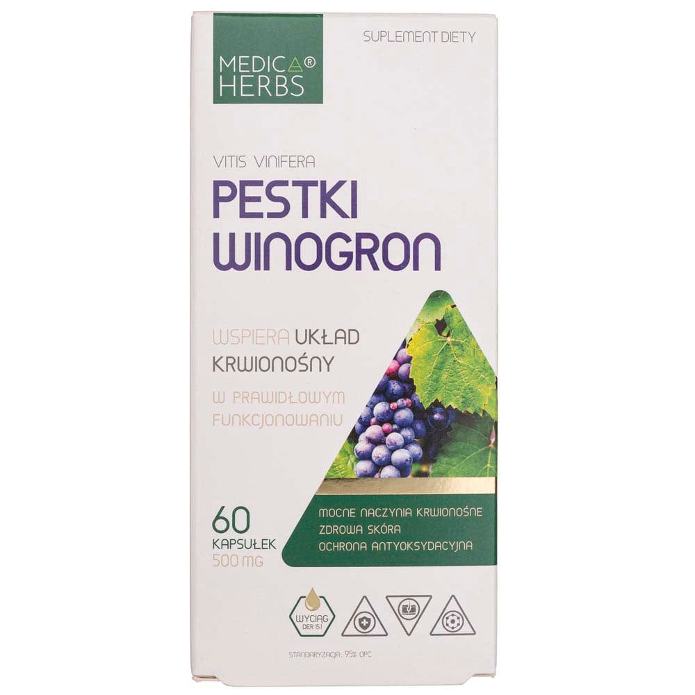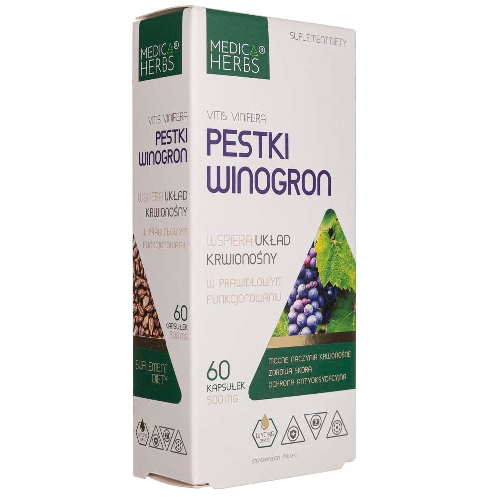 Medica Herbs Grape Seed je doplněk stravy ve formě tobolek, obsahující 95% standardizovaný extrakt oligomerních proanthokyanidinů (OPC) získaných z hroznových jader Vitis vinifera. Hroznová semena jsou bohatá na OPC, přírodní rostlinné sloučeniny, které byly studovány pro své potenciální zdravotní přínosy, včetně antioxidačních a protizánětlivých vlastností, stejně jako pro svou schopnost podporovat kardiovaskulární zdraví.