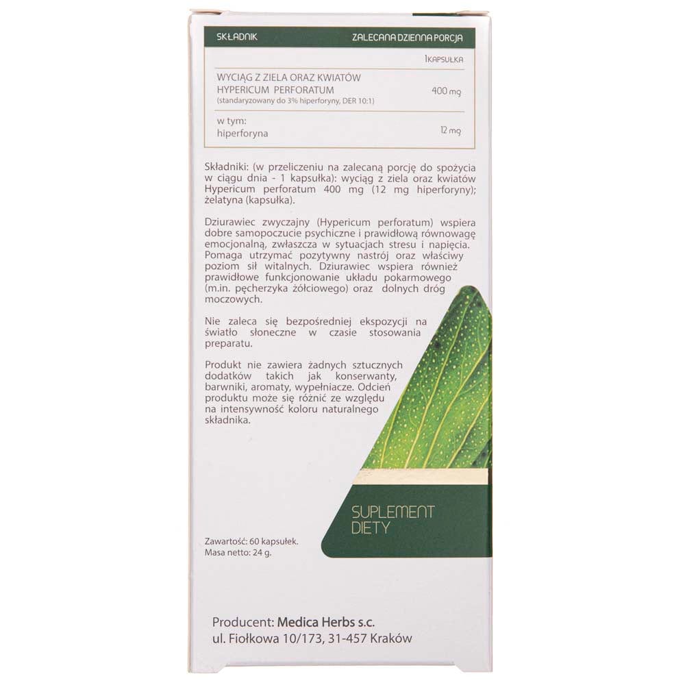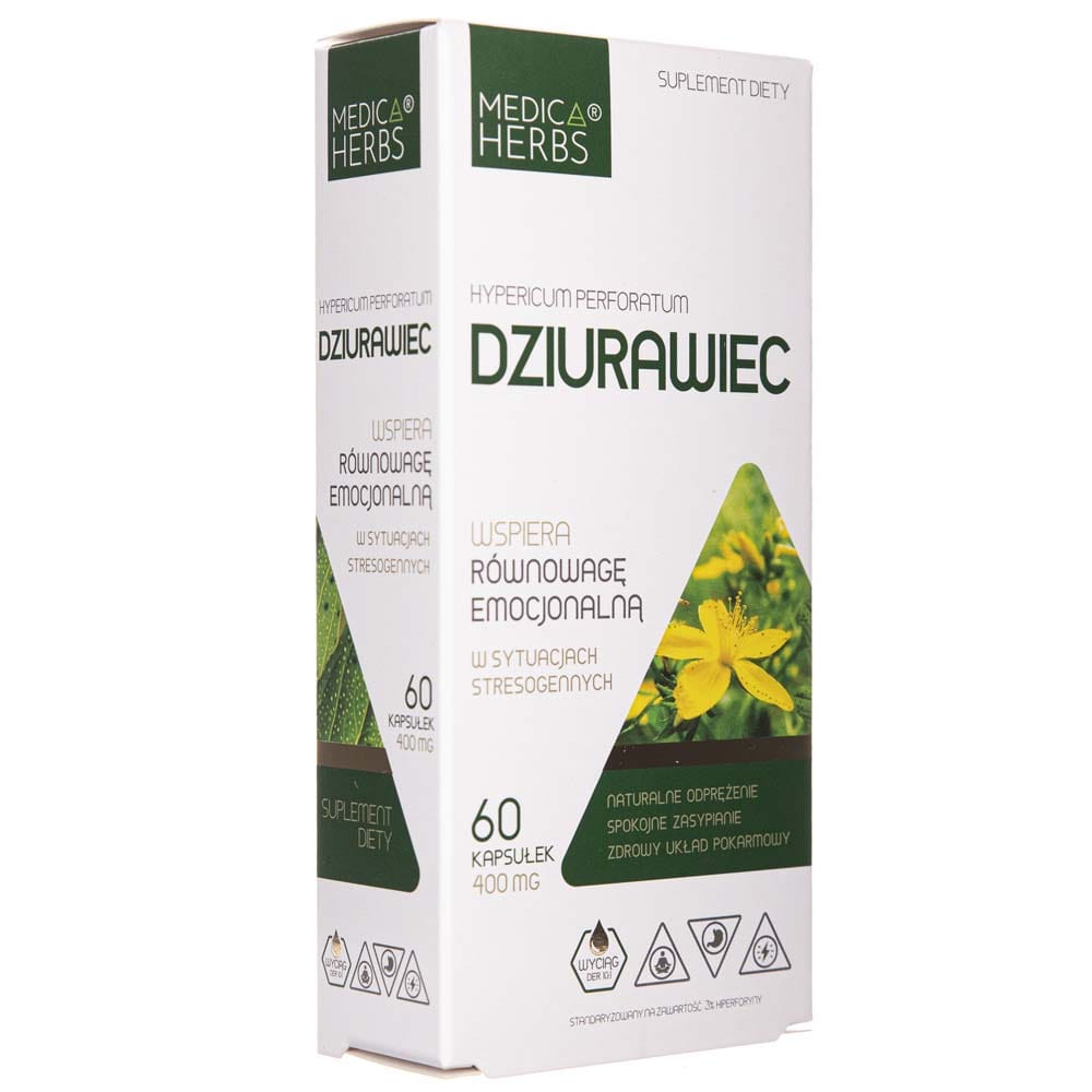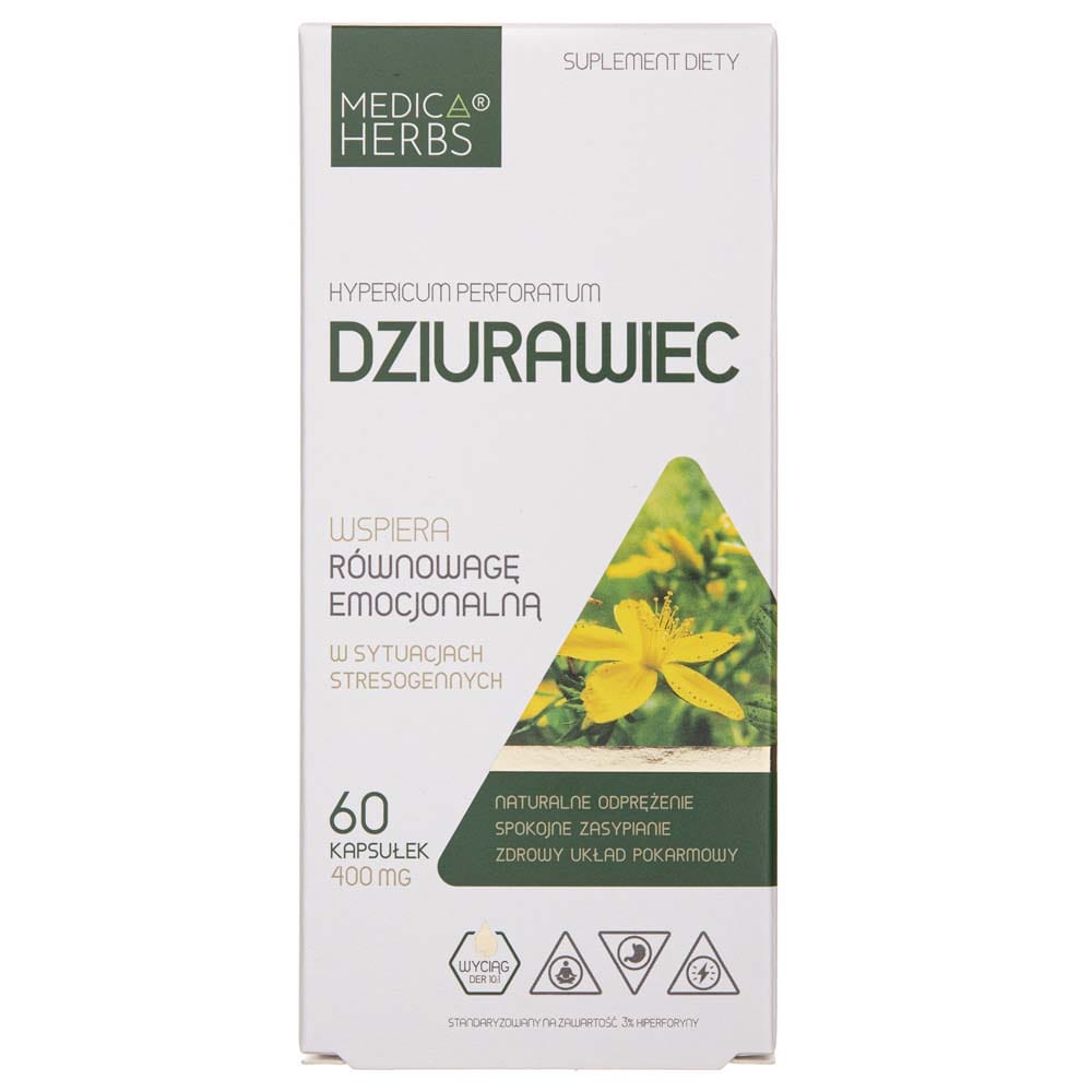 Třezalka tečkovaná Medica Herbs je doplněk stravy v kapslích, obsahující extrakt získaný z byliny a květů Hypericum perforatum standardizovaný na obsah 3% hyperforinu.