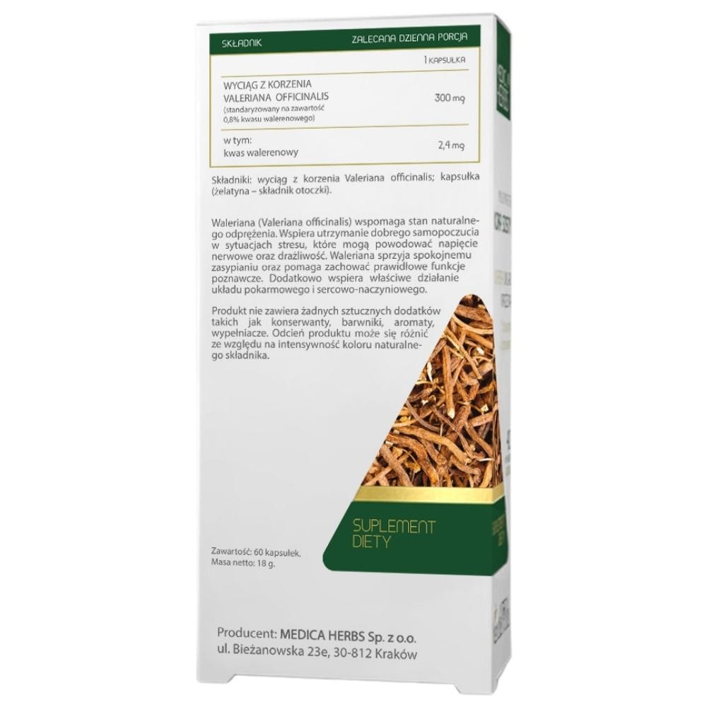 Doplněk stravy v kapslích od Medica Herbs. Přípravek obsahuje 300 mg extraktu kozlíku lékařského (Valeriana Officinalis) , standardizovaného na kyselinu valerenovou.