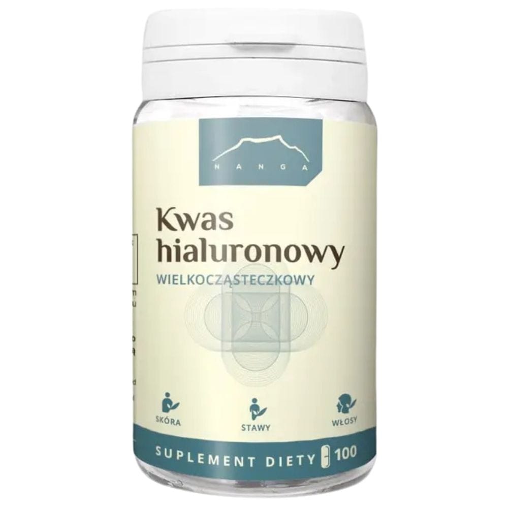 Nanga Velkomolekulární kyselina hyaluronová je doplněk stravy ve formě kapslí, bez zbytečných přísad a plniv. Obsahuje 200 mg hyaluronátu sodného v jedné kapsli, získaného fermentací glukózy bakteriemi Streptococcus zooepidemicus.