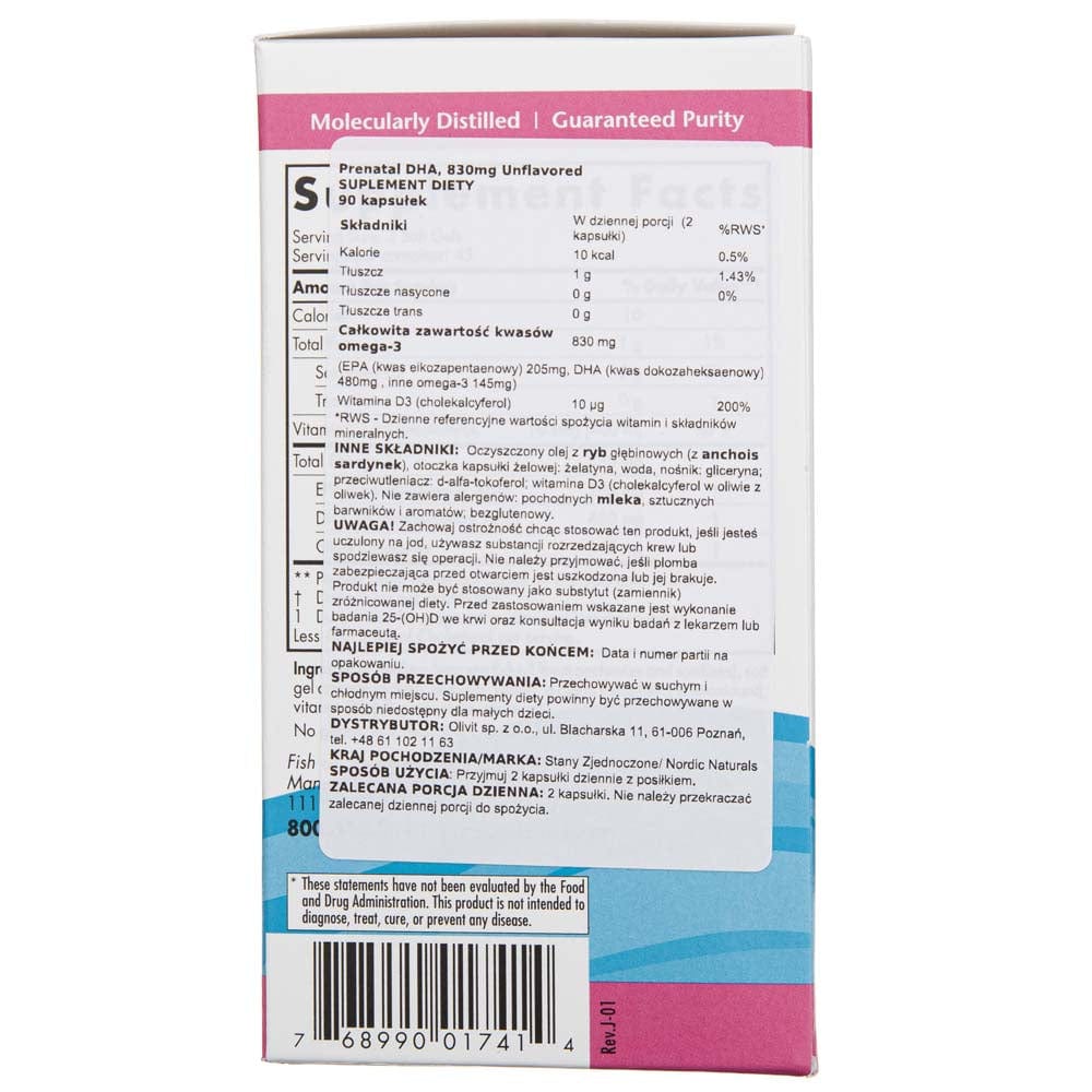 Nordic Naturals Prenatální DHA, Neochucená 830 mg - 90 měkkých gelů