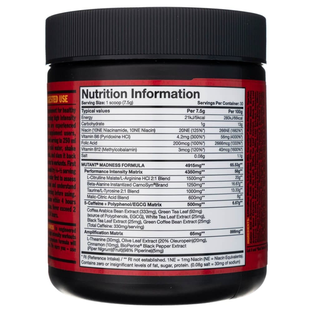 PVL Mutant Madness je práškový doplněk stravy určený pro trénink nejvyšší intenzity. Mutant Madness obsahuje arginin, citrulin, beta-alanin a další prémiové složky, které co nejlépe podpoří každý váš trénink.