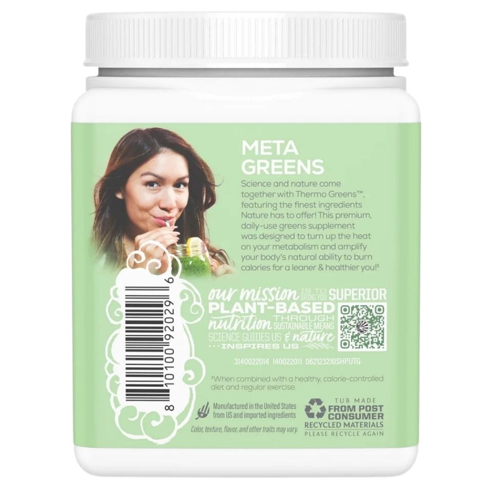 Sunwarrior SHAPE THERMO GREENS je práškový doplněk stravy obsahující směs 29 druhů ovoce, zeleniny a bylin. THERMO GREENS je navržen tak, aby podporoval metabolismus a zdravé složení těla díky vynikajícímu termogennímu katalyzátoru. Zdroj vysoce kvalitních, klinicky testovaných složek, které mají antioxidační účinky, bojují proti volným radikálům a aktivují hnědou tukovou tkáň, což umožňuje spalování tuků a zároveň vyživuje tělo nezbytnými zelenými látkami.