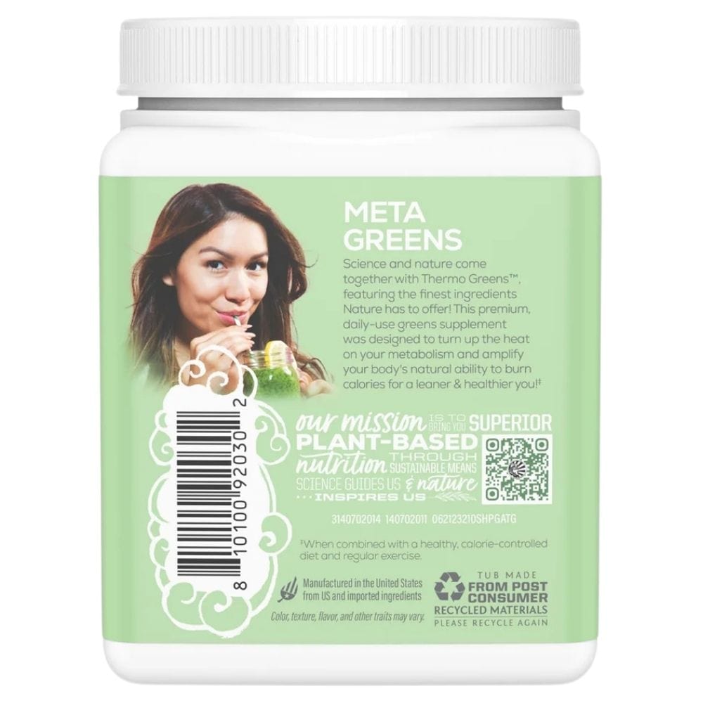 Sunwarrior SHAPE THERMO GREENS je práškový doplněk stravy obsahující směs 29 druhů ovoce, zeleniny, a bylin . THERMO GREENS je navržen tak, aby podporoval metabolismus a zdravé složení těla díky vynikajícímu termogennímu katalyzátoru. Je zdrojem vysoce kvalitních klinicky testovaných složek, které mají antioxidační účinky, bojují proti volným radikálům a aktivují hnědou tukovou tkáň, což umožňuje spalování tuků a zároveň vyživuje tělo nezbytnými zelenými látkami.