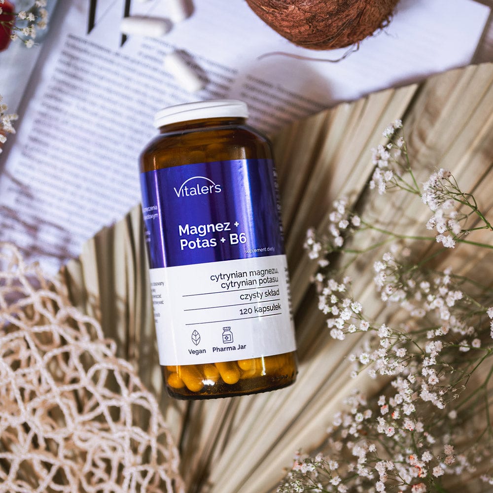 Vitaler's Hořčík 100 mg Draslík 150 mg B6 10 mg je doplněk stravy určený k užívání dospělými. Přípravek využívá nejlépe vstřebatelnou formu hořčíku , a to citrát. Hořčík a draslík dokonale podporují správnou funkci svalů ,, zatímco vitamin B6 a hořčík pomáhají snižovat pocity únavy a vyčerpání. Tento doplněk stravy byl vyvinut pro lidi, kteří hledají komplexní podporu zdravých svalů a kostí. Denní dávka ( 1 kapsle ) pokrývá několikanásobek denní potřeby tohoto prvku u průměrného dospělého člověka. Balení obsahuje 60 dávek přípravku ve formě veganských kapslí ,, což vystačí na dva měsíce nepřetržité suplementace.