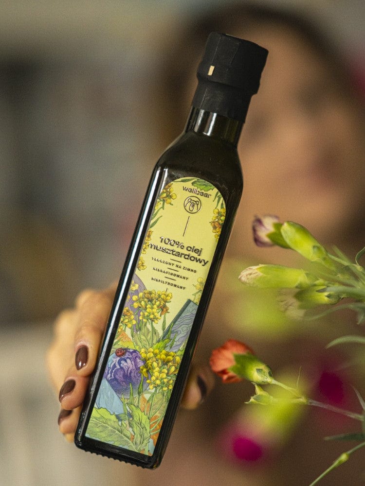 Hořčičný olej lisovaný za studena je olej získaný z pečlivě vybraných hořčičných semen. Výrobek obsahuje všechny přírodní složky, které se v semenech rostliny nacházejí. Zároveň, neobsahuje konzervační látky, barviva ani umělé antioxidanty. Výrobek neprochází žádnou filtrací ani čištěním, a poskytuje tak mnoho zdraví prospěšných látek.